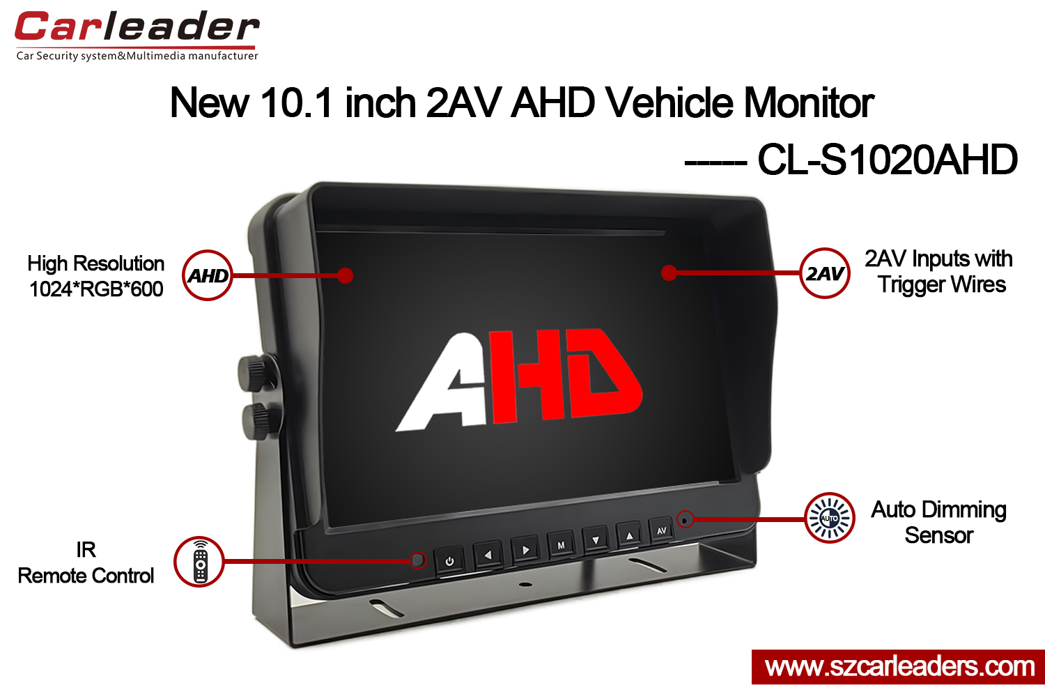 Carleader10.1 Inch 2CH AHD Input Monitor Serep Kendaraancocok kanggo truk, bus, van, RV, bus sekolah, mesin pertanian, mesin konstruksi, peralatan sanitasi, lsp.
