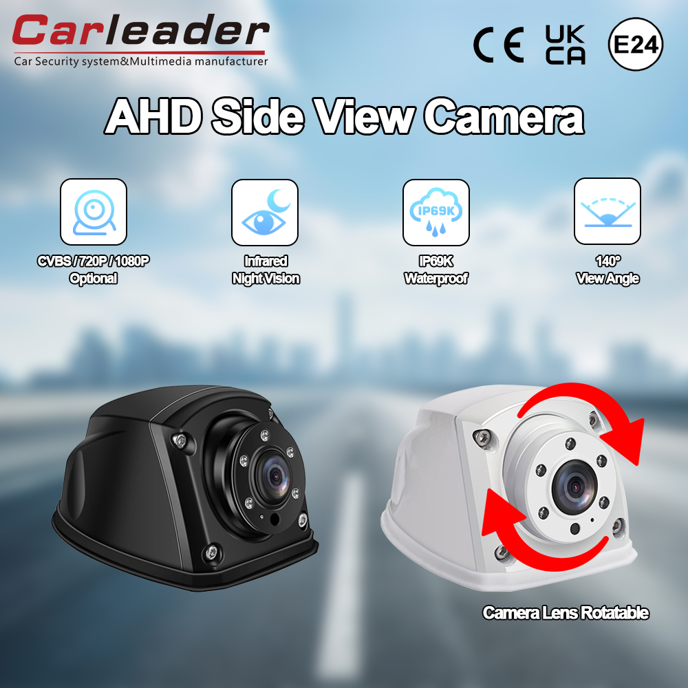 CarleaderAHD 5 IR LED Kendaraan Side View CameraPasKanggo Kendaraan Heavy Duty, kayata truk, trailer, bis lan HGV. Kamera serep AHD 1080P nggunakake teknologi Analog High Definition (AHD) lan resolusi dhuwur 1920*1080 kanggo nyedhiyakake gambar sing cetha. Manajer armada truk wis fokus ing produk safety otomotif, utamane sistem deteksi kamera kanggo kendaraan komersial. Manajer armada nuduhake minat ing spek teknis, aplikasi pasar, lan kepatuhan peraturan.