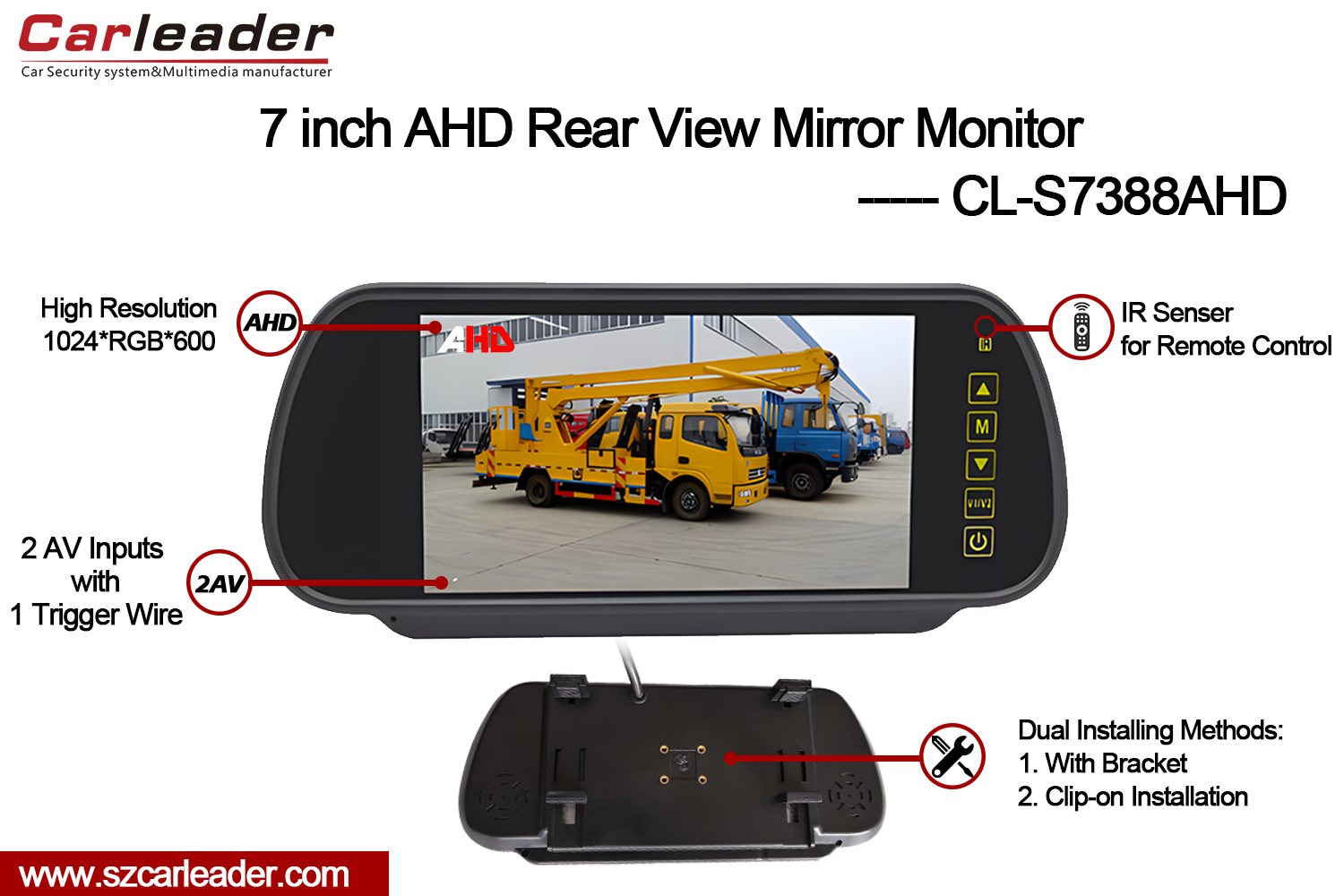 Carleader7 Inch TFT LCD Rear View Mirror AHD Monitorminangka monitor AHD pangilon mobil 7 inci kanthi kinerja dhuwur sing dirancang kanggo menehi kajelasan lan fleksibilitas sing luar biasa kanggo sistem pemantauan kendaraan modern. Nggabungake fitur canggih karo desain sing ramah pangguna, monitor iki njamin kinerja sing bisa dipercaya ing macem-macem kahanan nyopir.